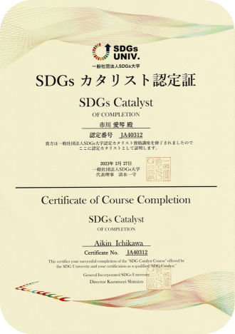 弊社は2023年2月一般社団法人SDGs大学認定カタリスト資格を取得いたしました。