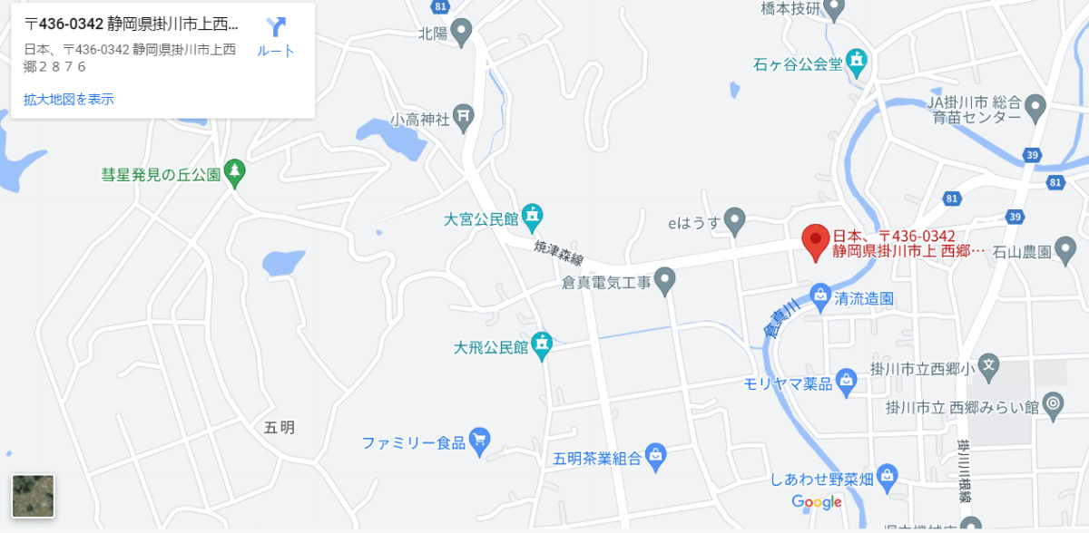 | 所在地 | 〒436-0342 静岡県掛川市上西郷2876 |